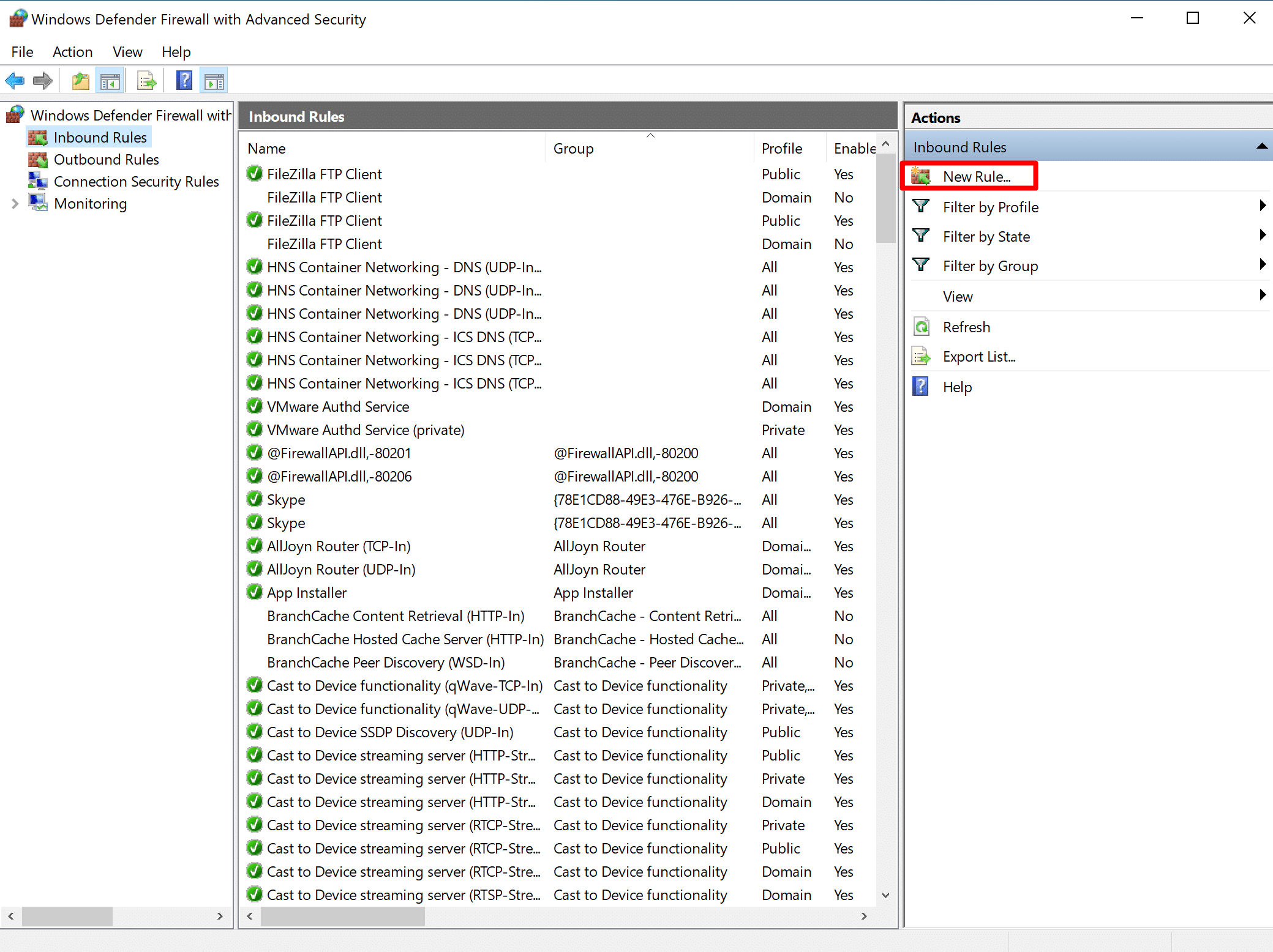 - It will open the “New Inbound Rule Wizard” console.