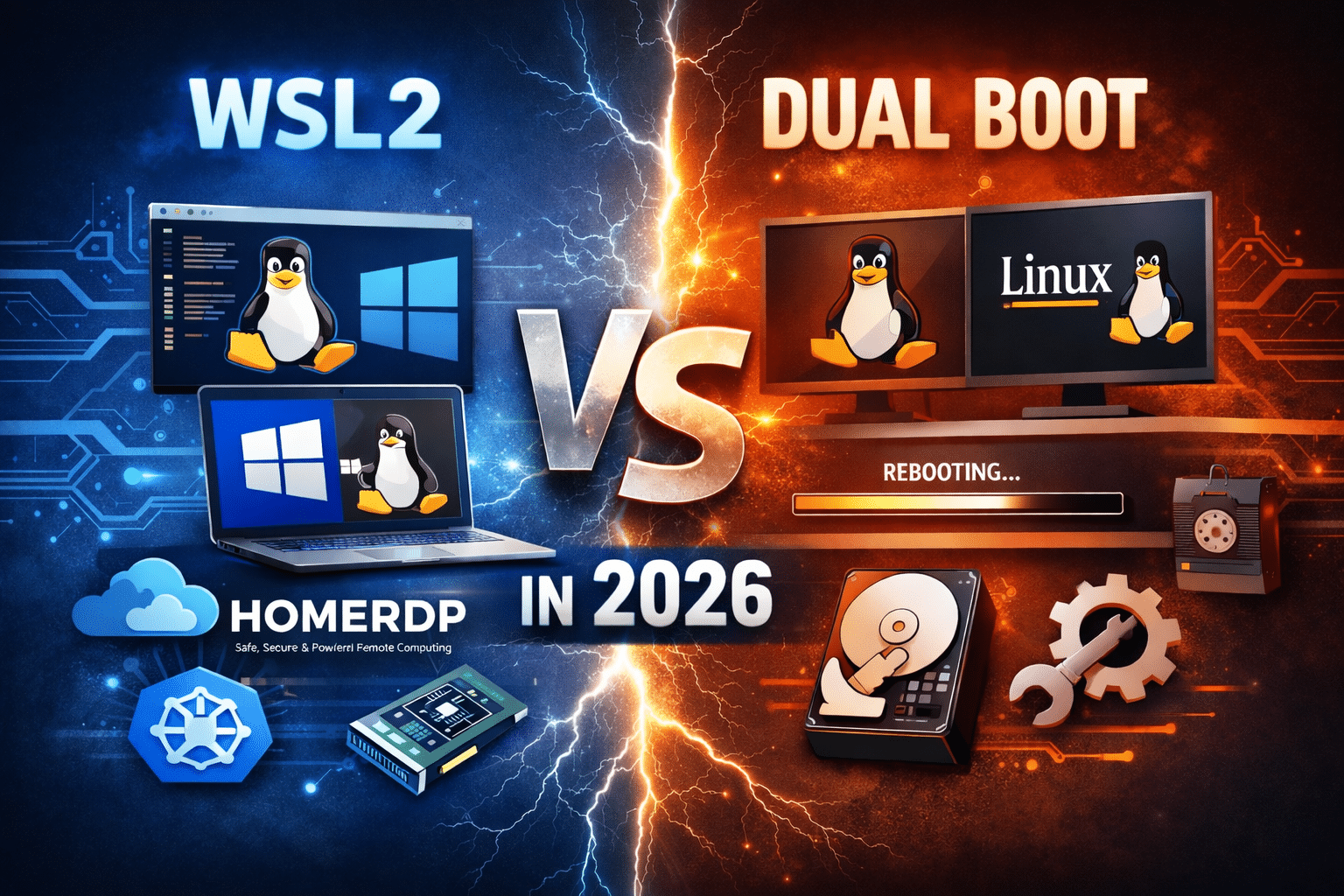 This article takes a deep, data-driven look at WSL2 vs Dual Boot in 2026, compares real-world use cases, and explains how modern workflows increasingly combine WSL2 for local development with remote infrastructure like HOMERDP for scalable, high-performance computing.